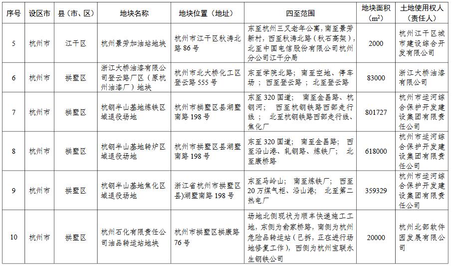 附件:浙江省建設用地土壤污染風險管控和修復名錄(第一批)